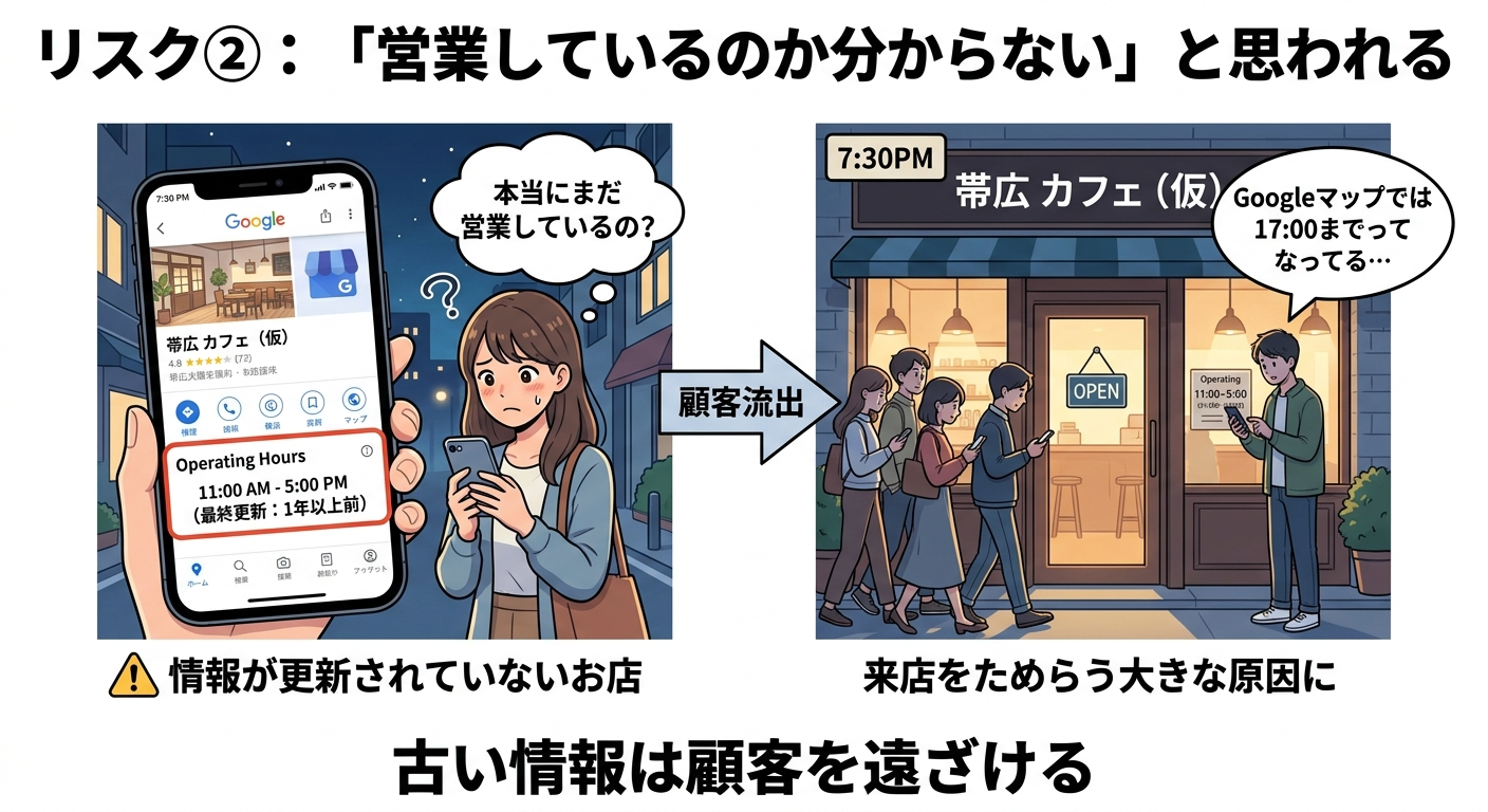 リスク②:「営業しているのか分からない」と思われる